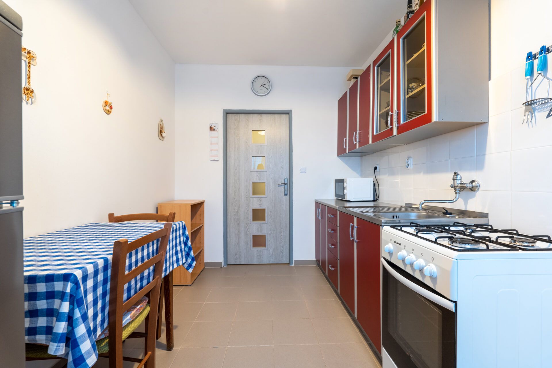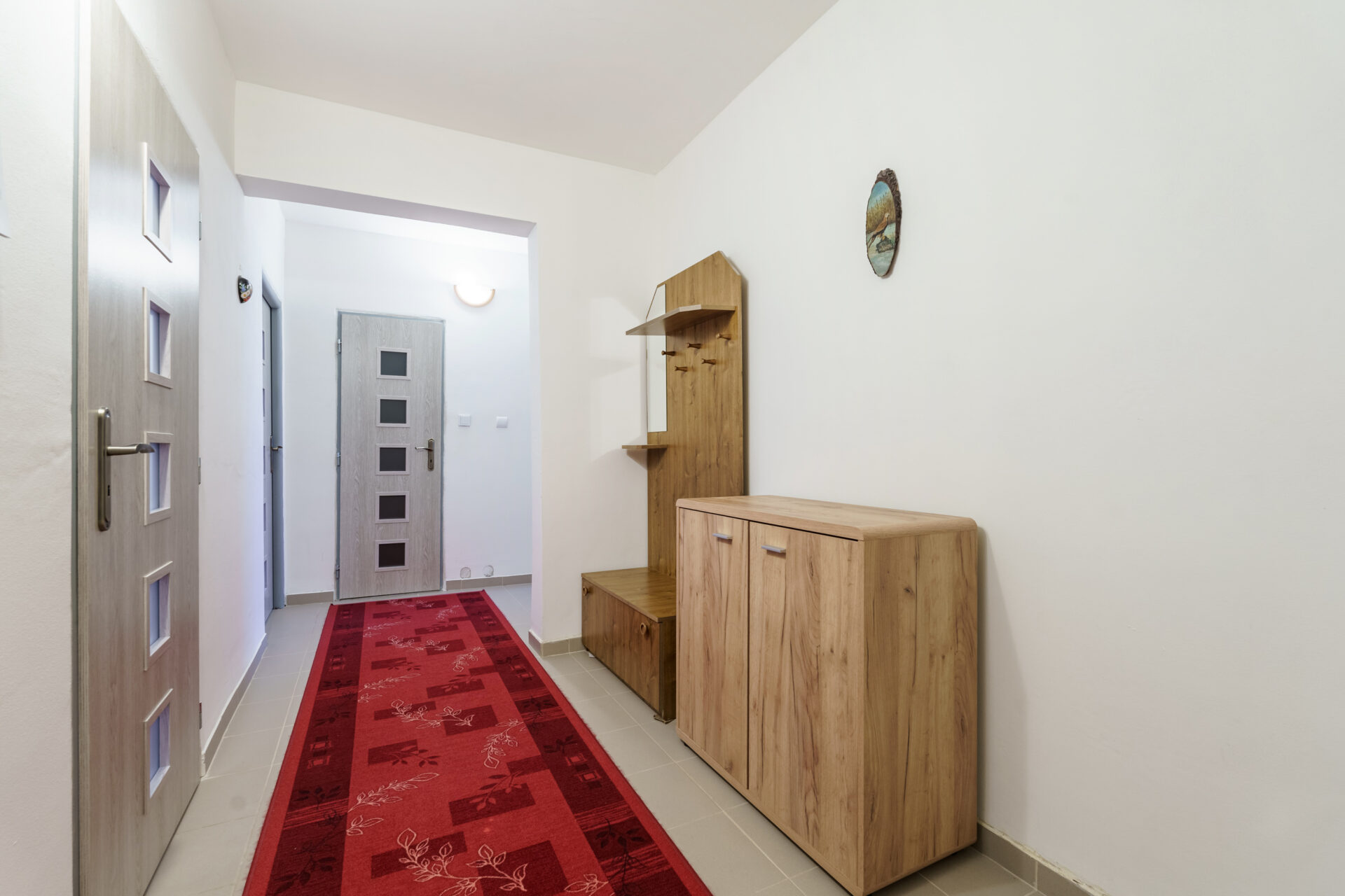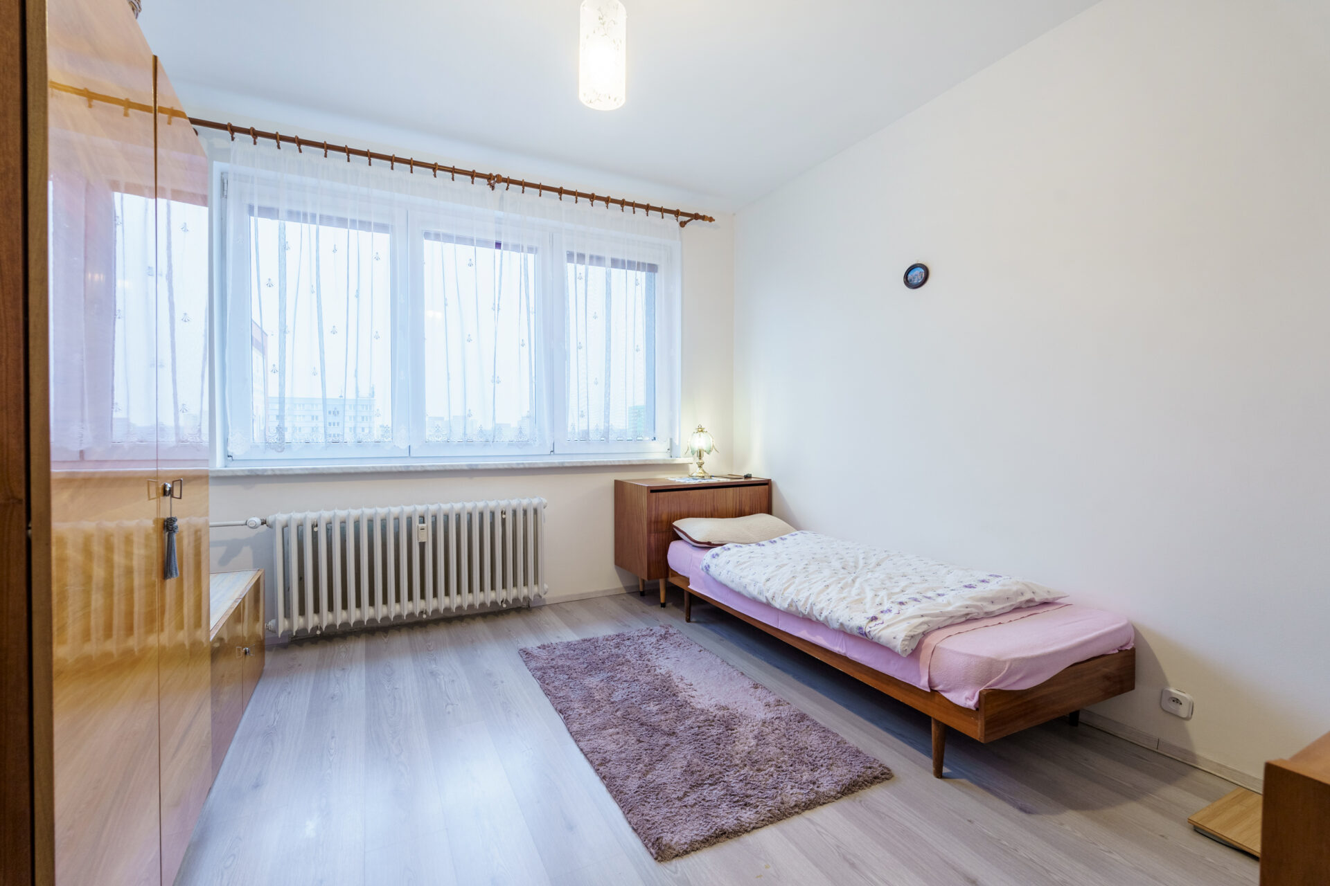 Kuchyně s dostatkem úložného prostoru, protože je zde vybudovaná samostatná spíž, kam uložíte každou potřebnou konzervu i lahev. Světlá koupelna samostatná, s vanou, toaleta zvlášť. K tomu dva samostatné, neprůchozí pokoje orientované jeden na východ, druhý na západ.